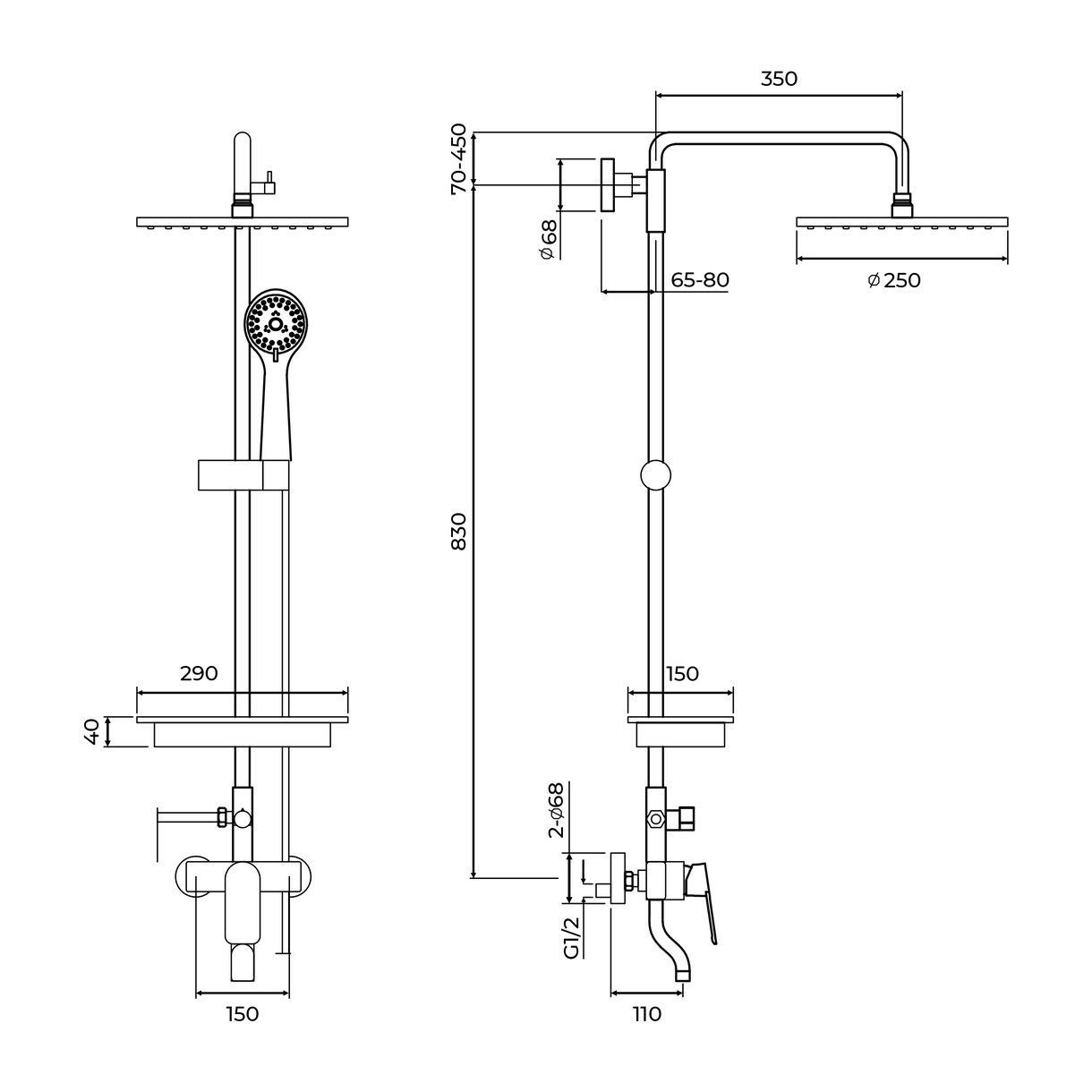 Душевая система со смесителем AVRORA Moon AV3540 в матовом черном цвете