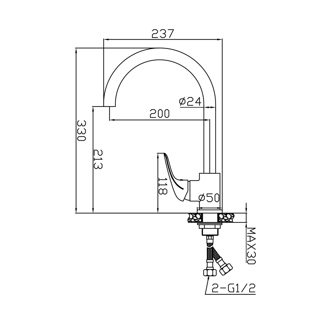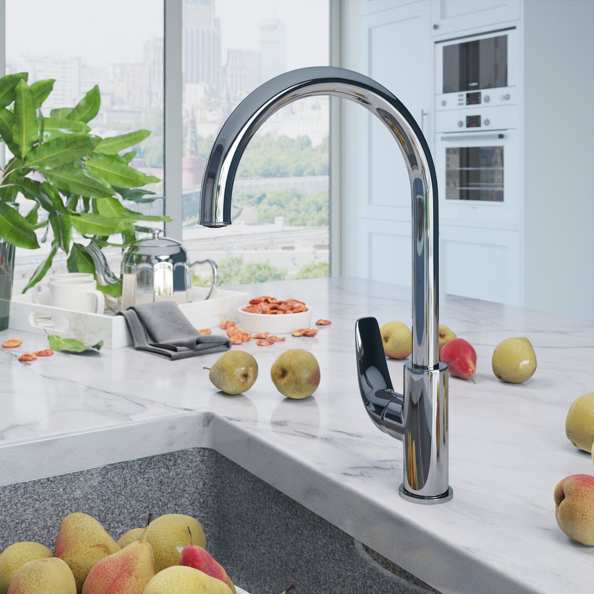 Смеситель для кухни AVRORA Glade AV3021 с высоким поворотным изливом