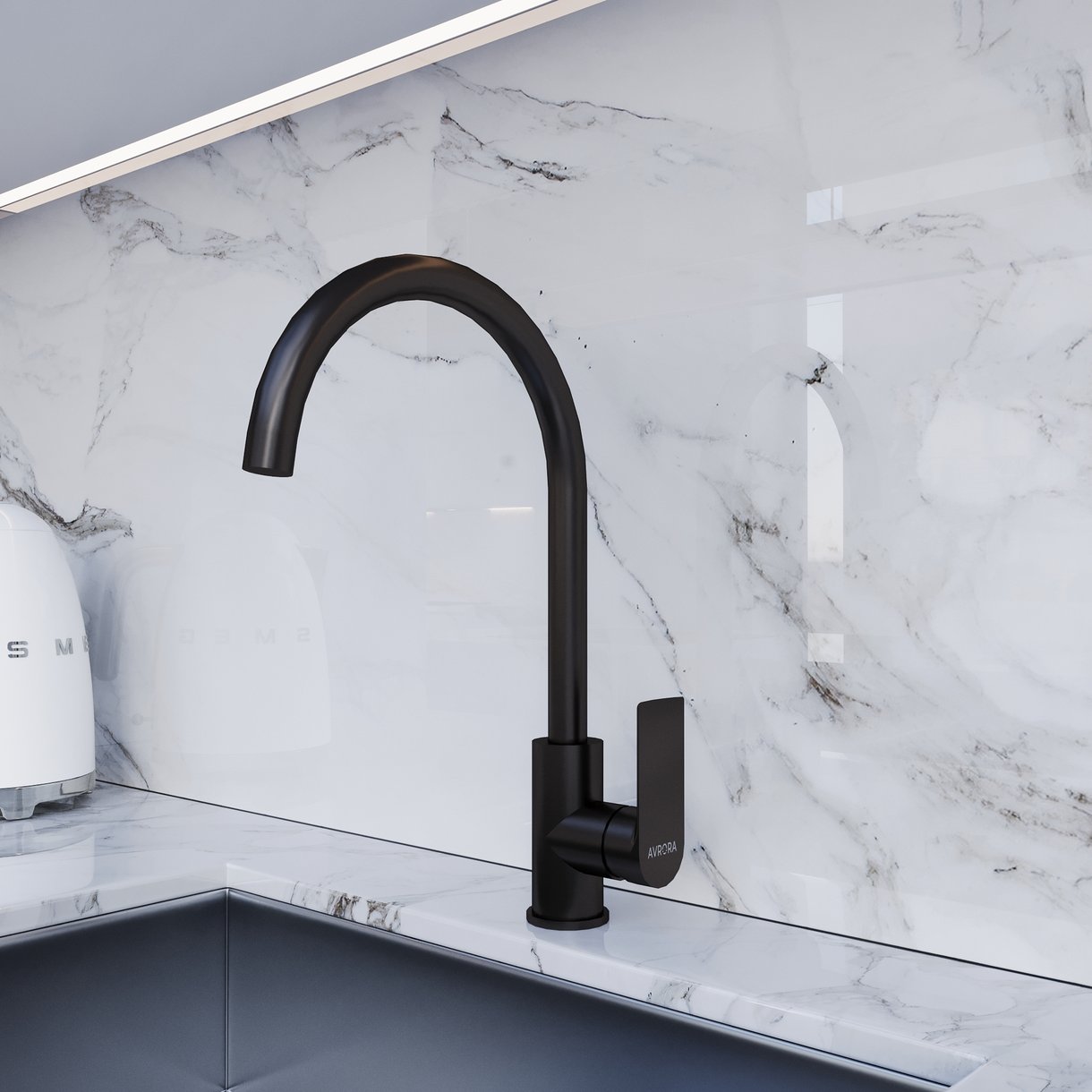 Смеситель для кухни AVRORA Moon AV3521 с высоким поворотным изливом в матовом черном цвете