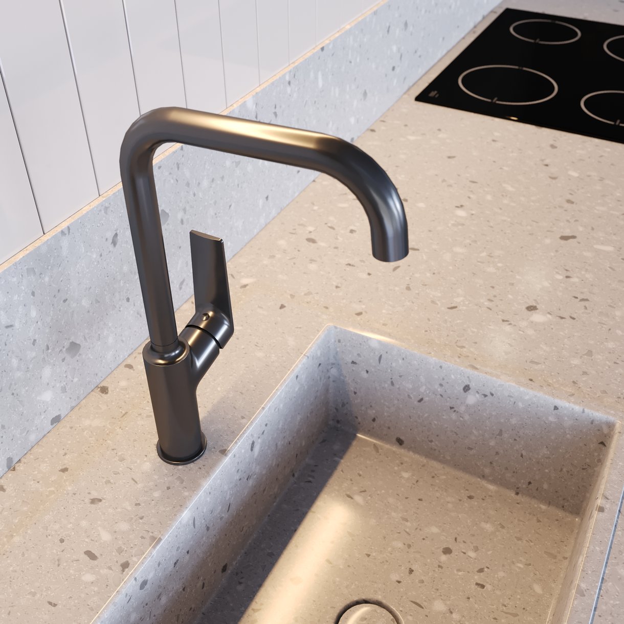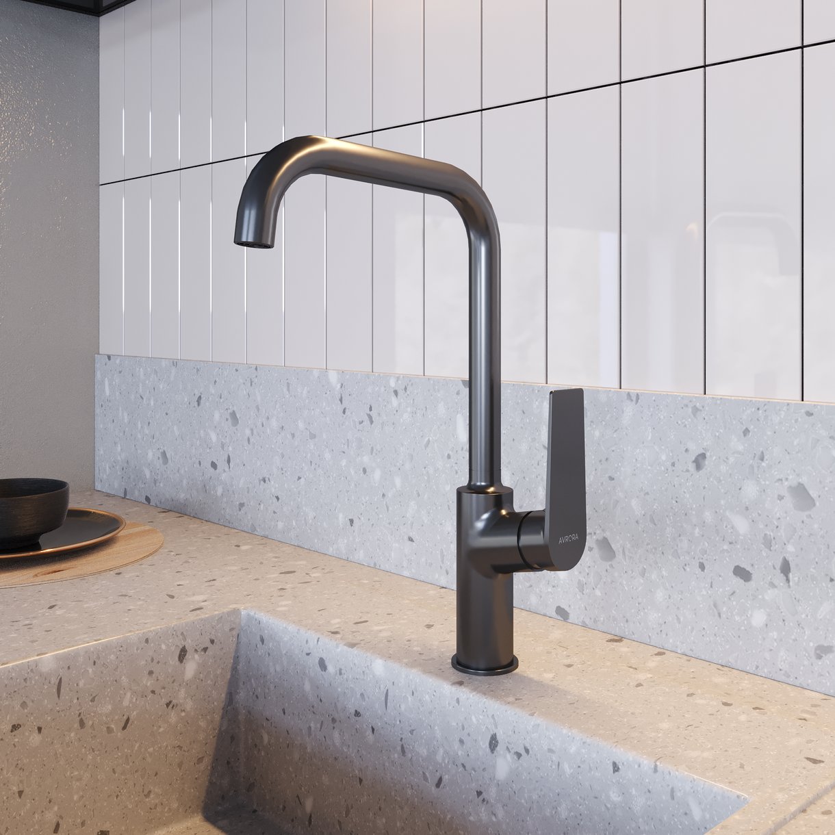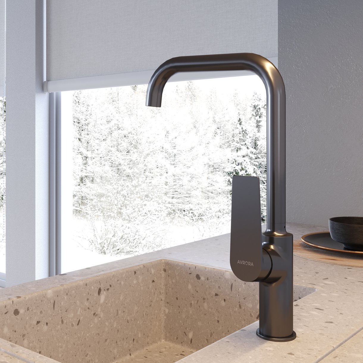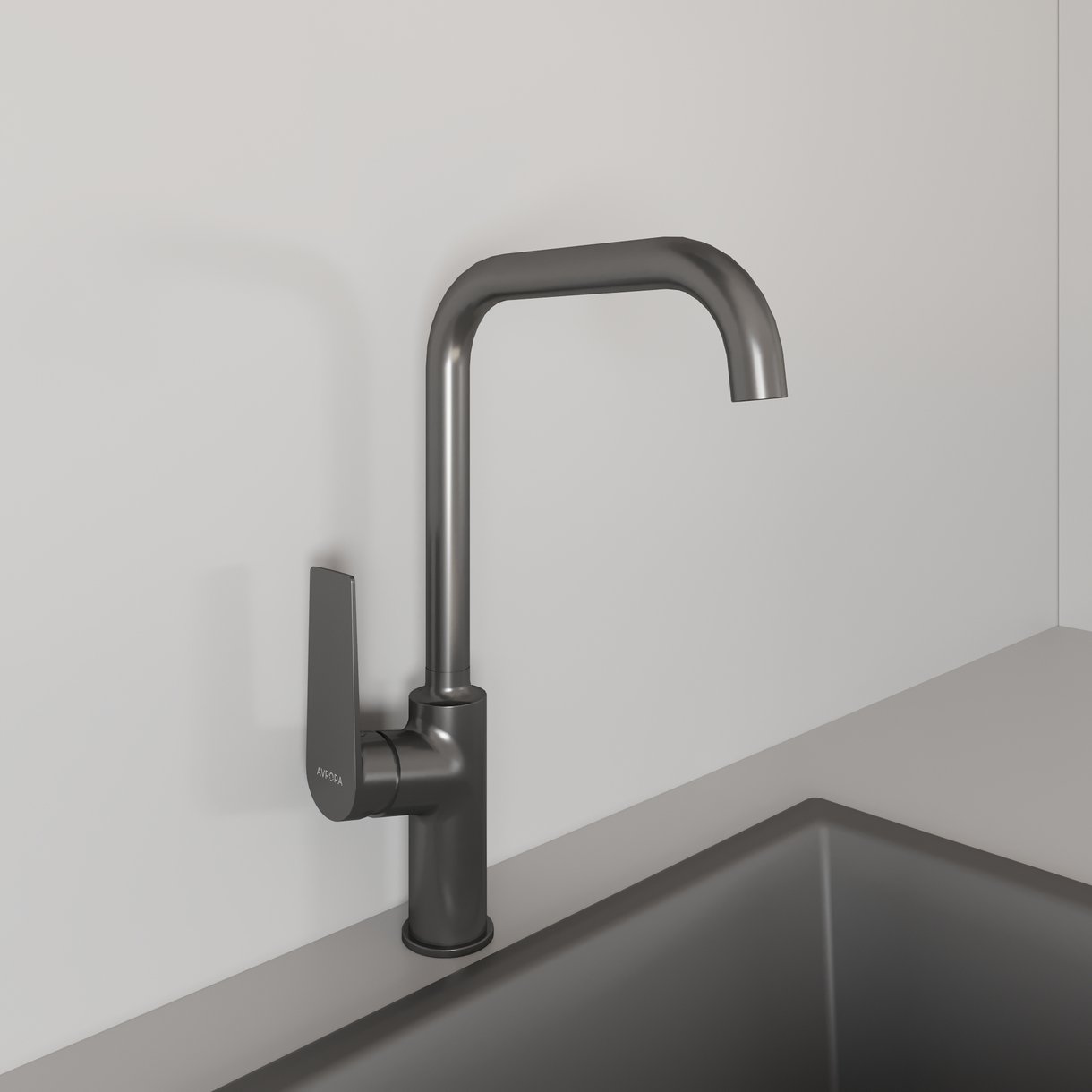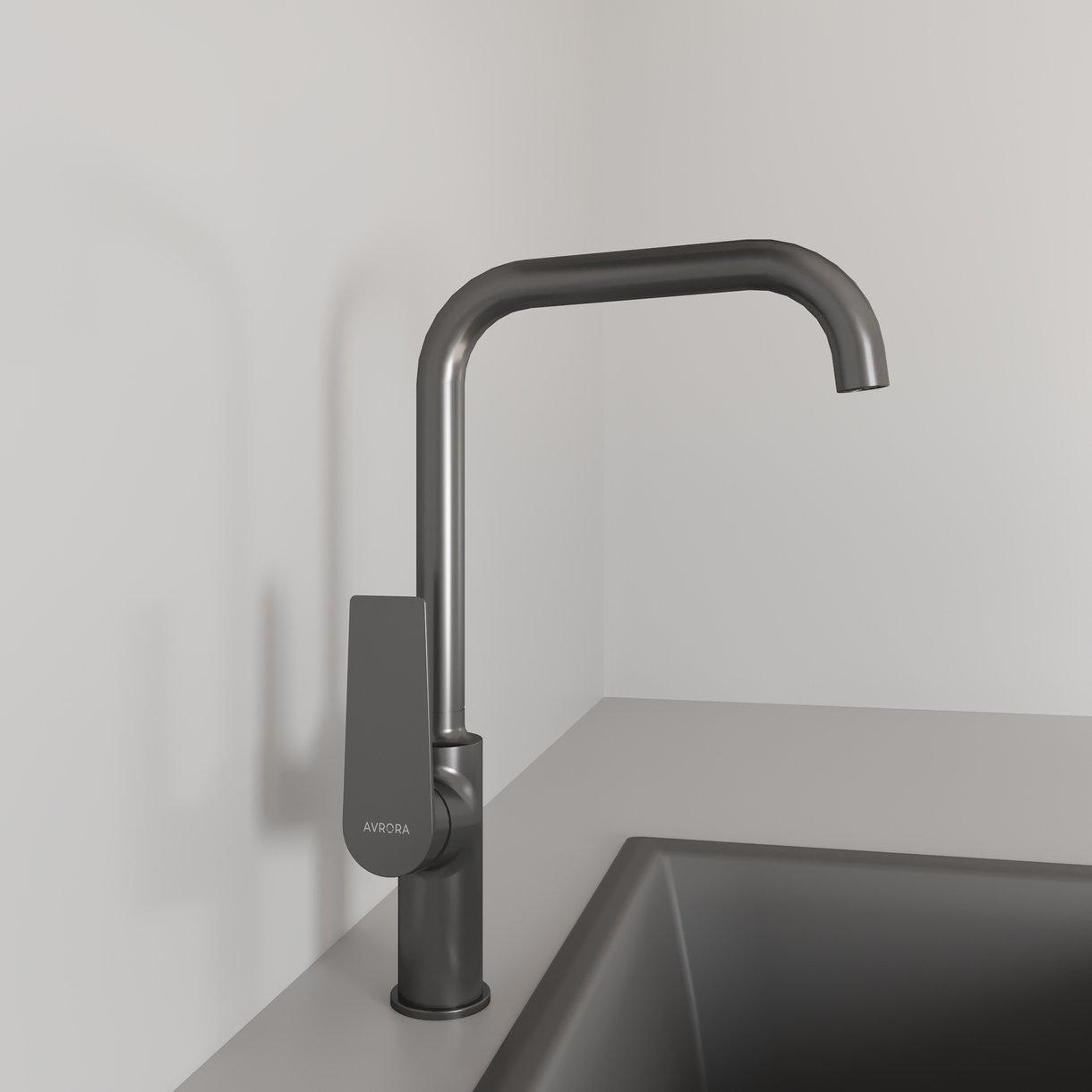 Смеситель для кухни AVRORA Grand AV3821 с высоким поворотным изливом, цвет графит