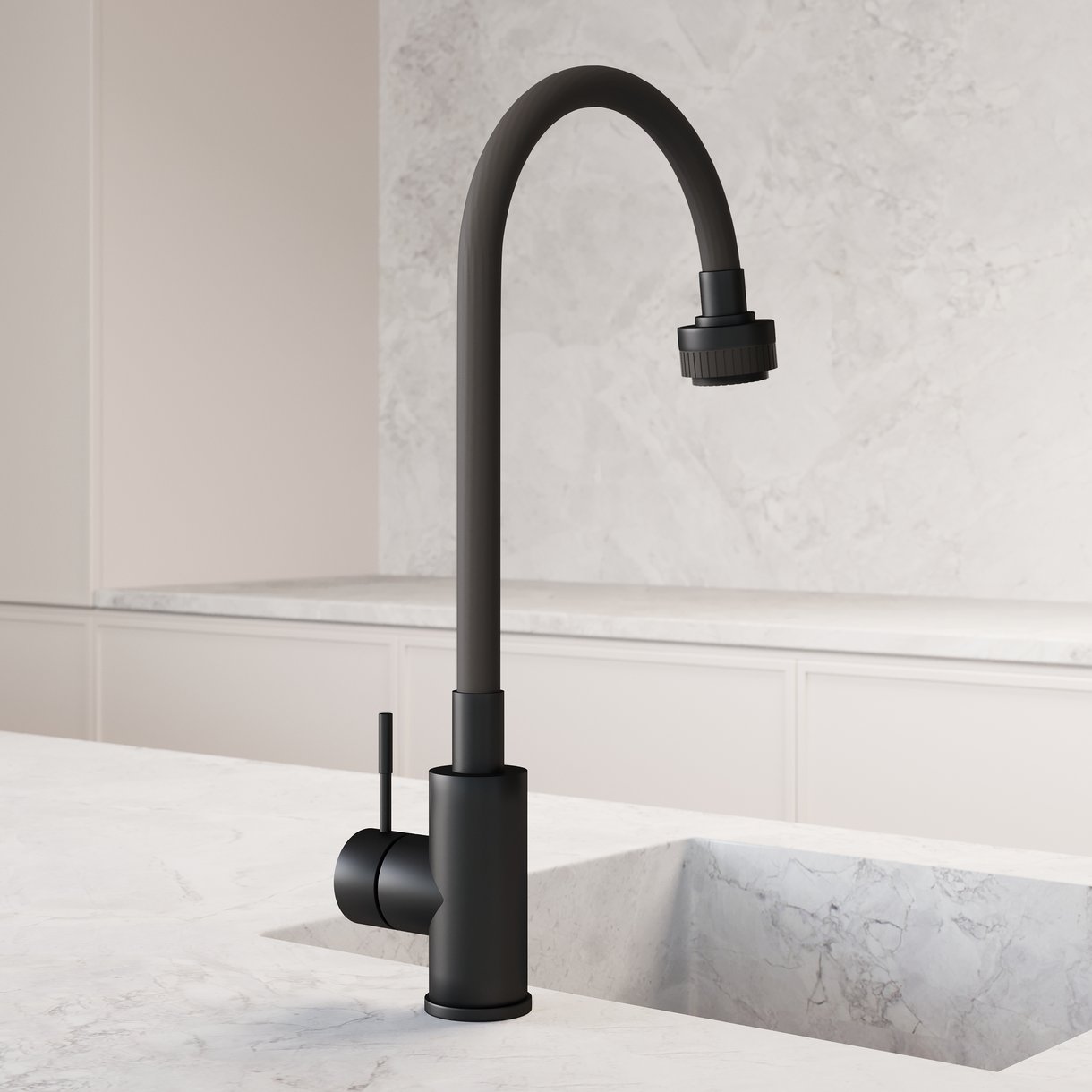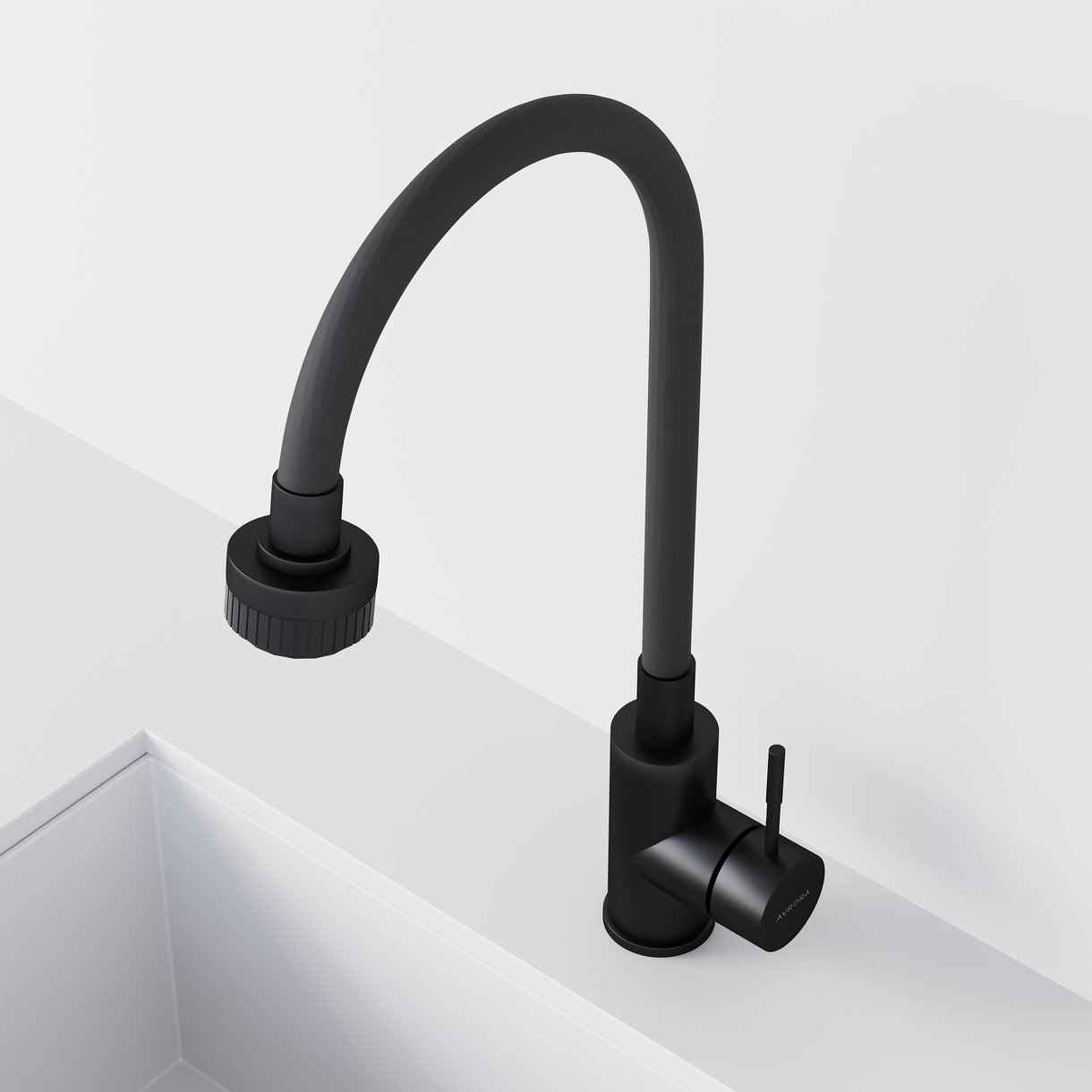 Смеситель для кухни AVRORA Kitchen AV9001B с высоким гибким изливом, черный