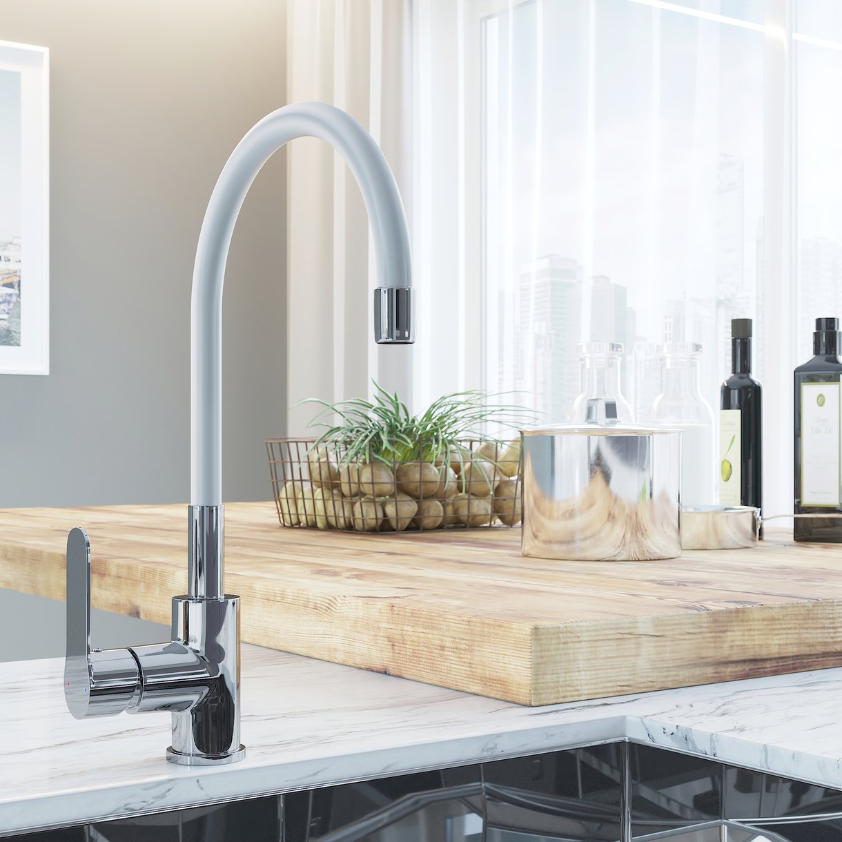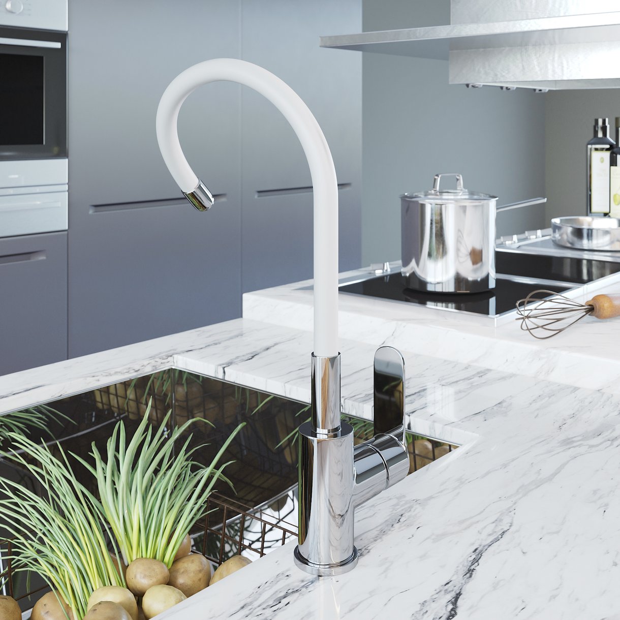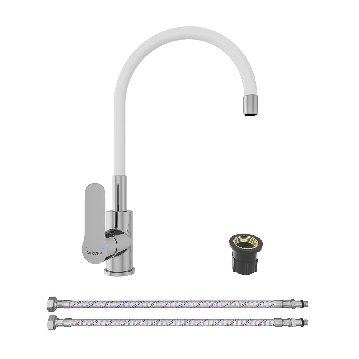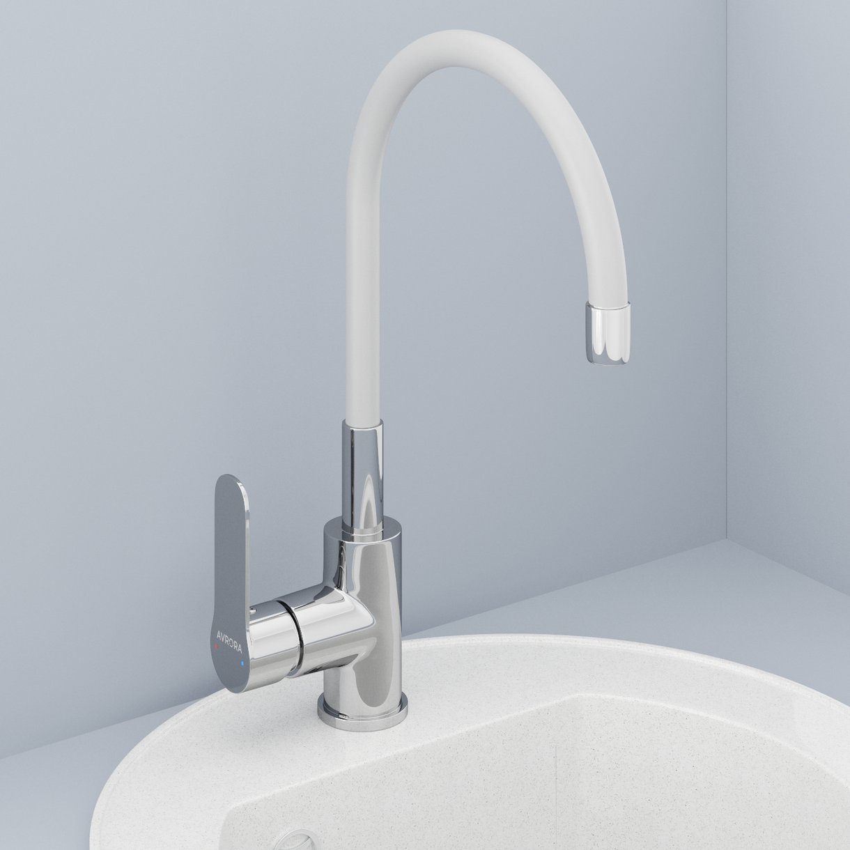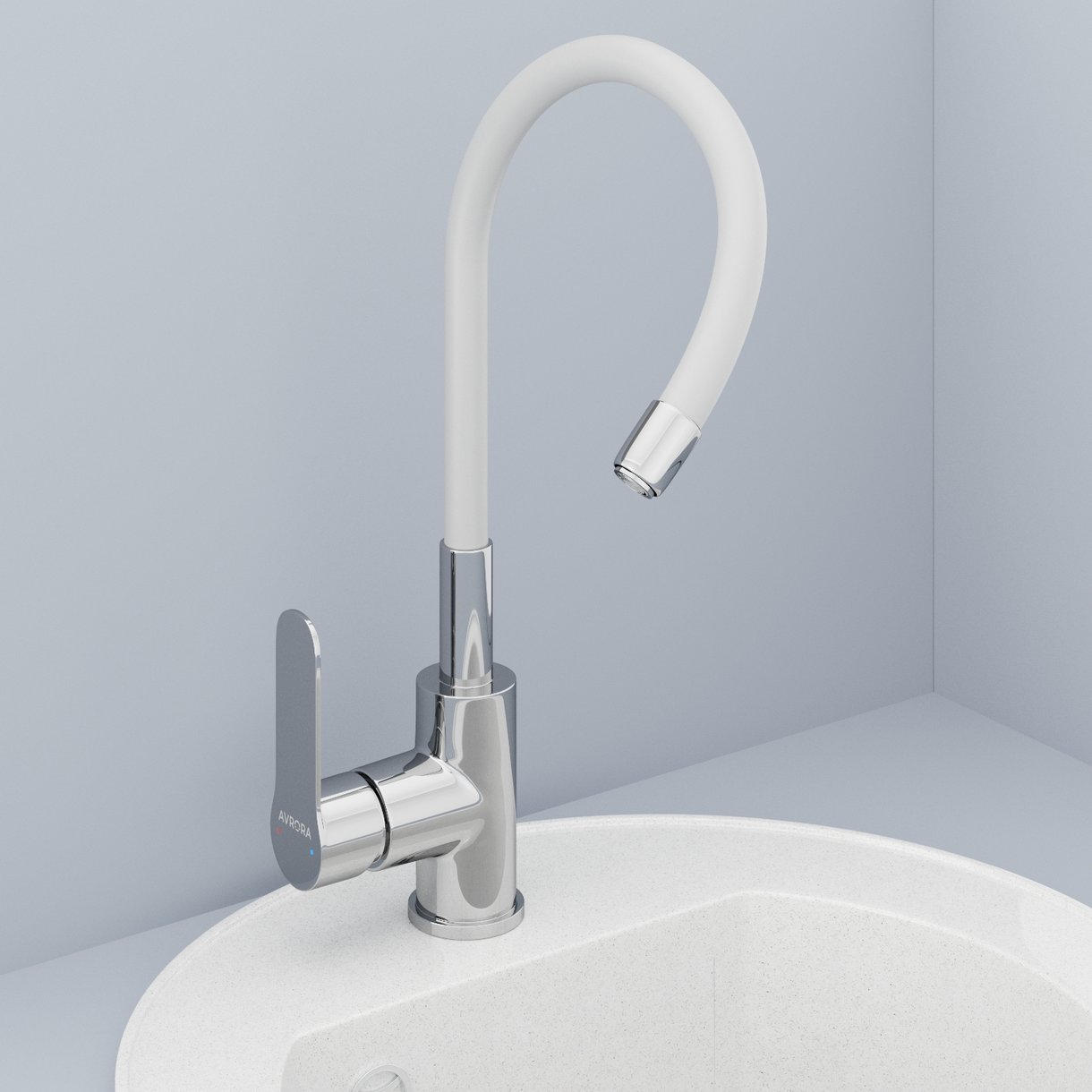 Смеситель для кухни AVRORA Kitchen AV9002W с высоким гибким изливом белый