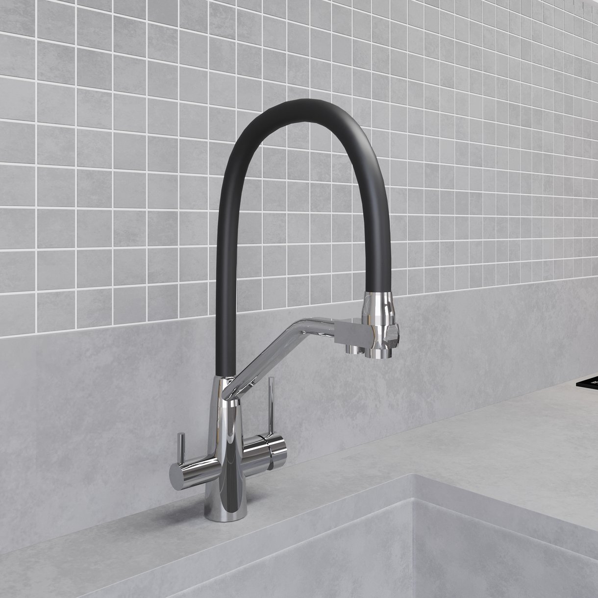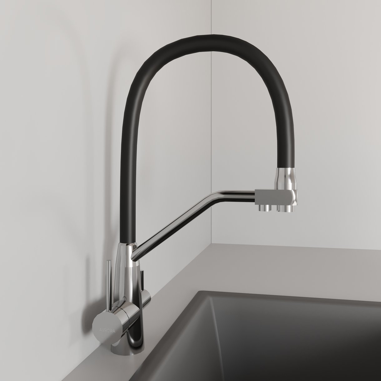Смеситель для кухни AVRORA Kitchen AV9006 с гибким изливом хром с подключением фильтра питьевой воды