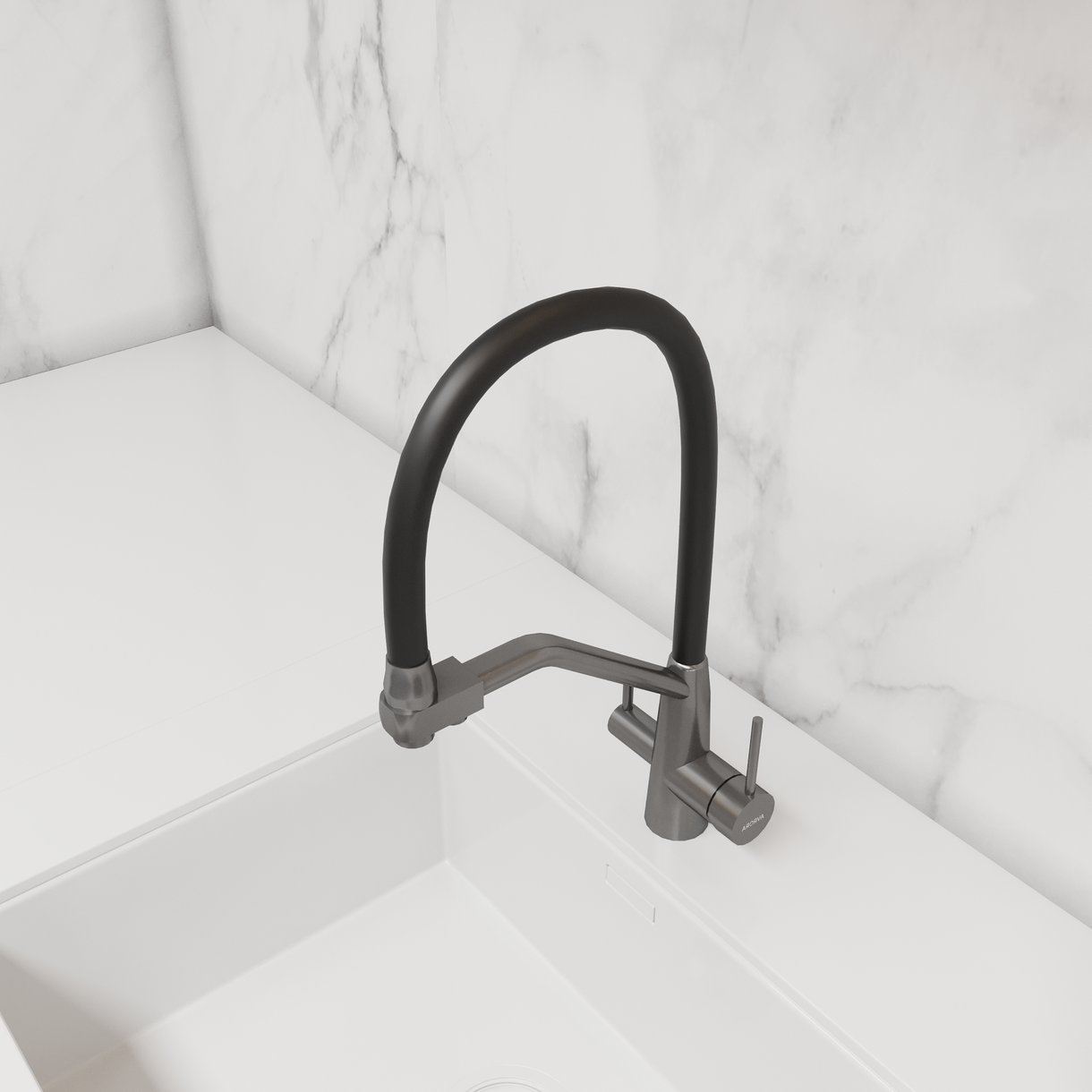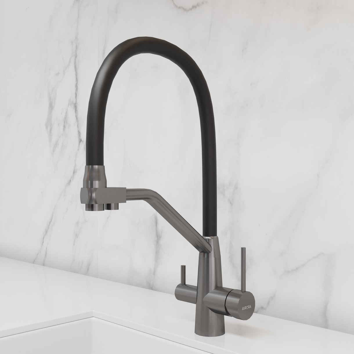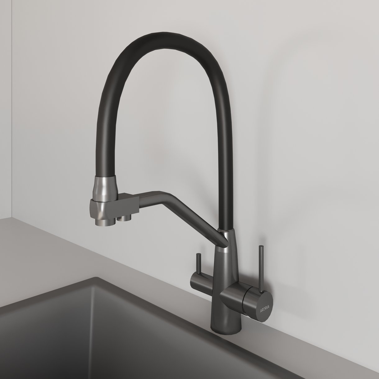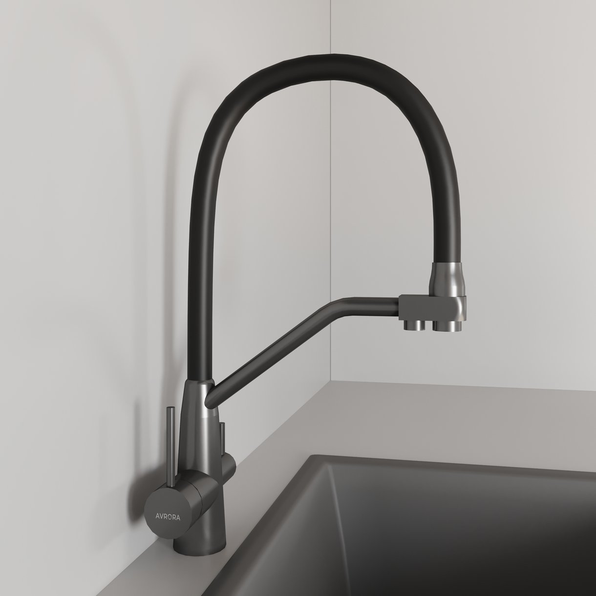Смеситель для кухни AVRORA Kitchen AV9006GM с гибким изливом графит с подключением к фильтру питьевой воды