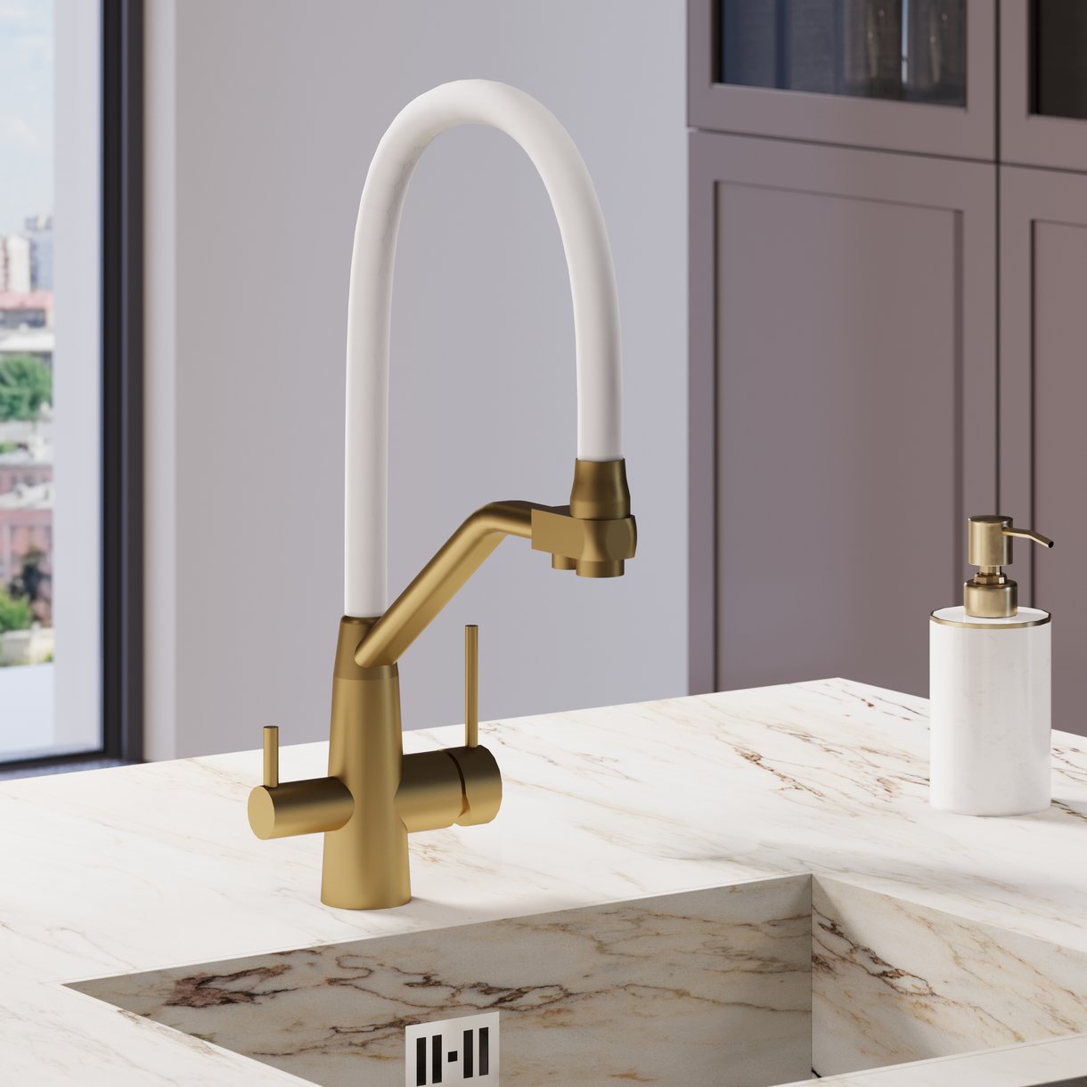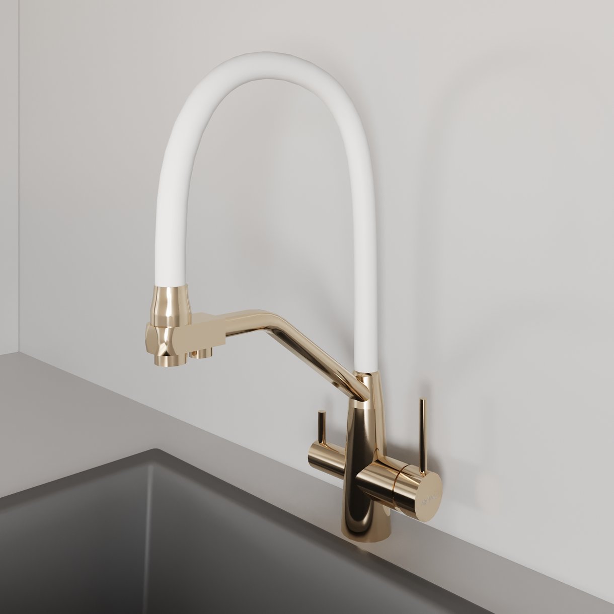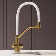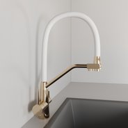 Смеситель для кухни AVRORA Kitchen AV9006Gold с гибким изливом золото с подключением к фильтру питьевой воды