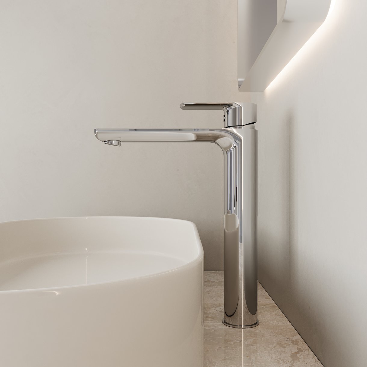 Смеситель для умывальника высокий AVRORA Moon AV3512C монолитный, цвет хром