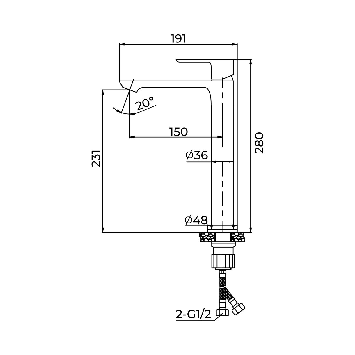 Пластиковый аэратор с функцией легкой очистки, Гибкая подводка 40см - 2шт, Металлическая рукоятка |