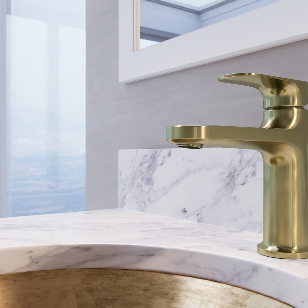 Смеситель для умывальника AVRORA Rumy AV5910Gold монолитный, цвет золото