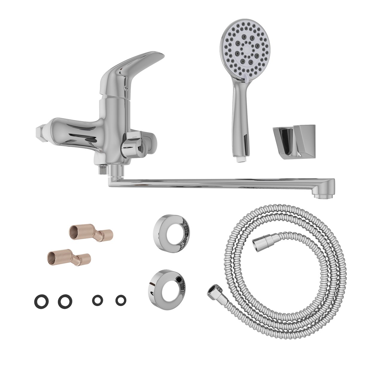 Эксцентрики, душевой шланг, душевая лейка, держатель для душа, переключатель потоков, аэратор, |